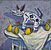 Drechsler, Klaus. – „Birnenstillleben mit weißem Holzhund”